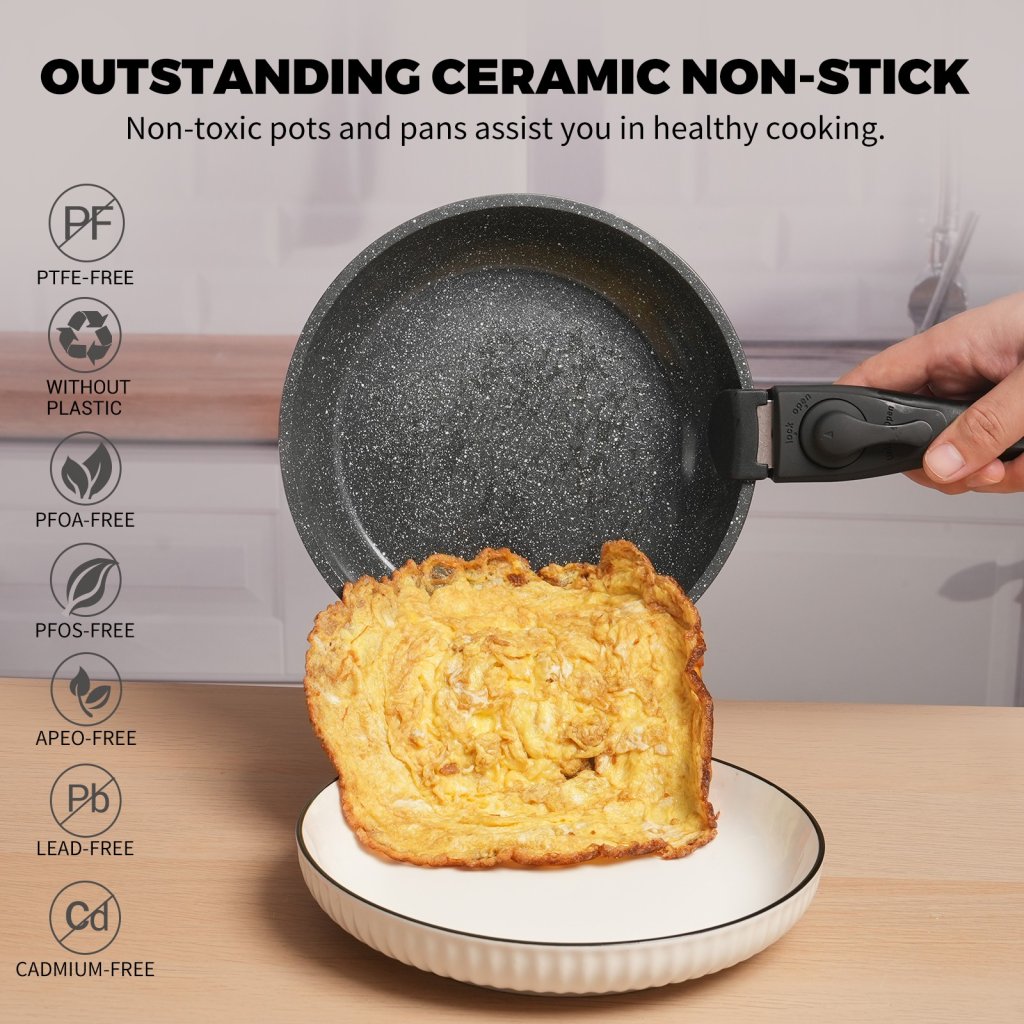 專為現代家庭打造的多功能廚具組合,結合陶瓷不沾塗層、可拆卸手柄設計全爐具相容結構,滿足日常煎、炒、煮、燉與烘烤等多元烹飪需求。